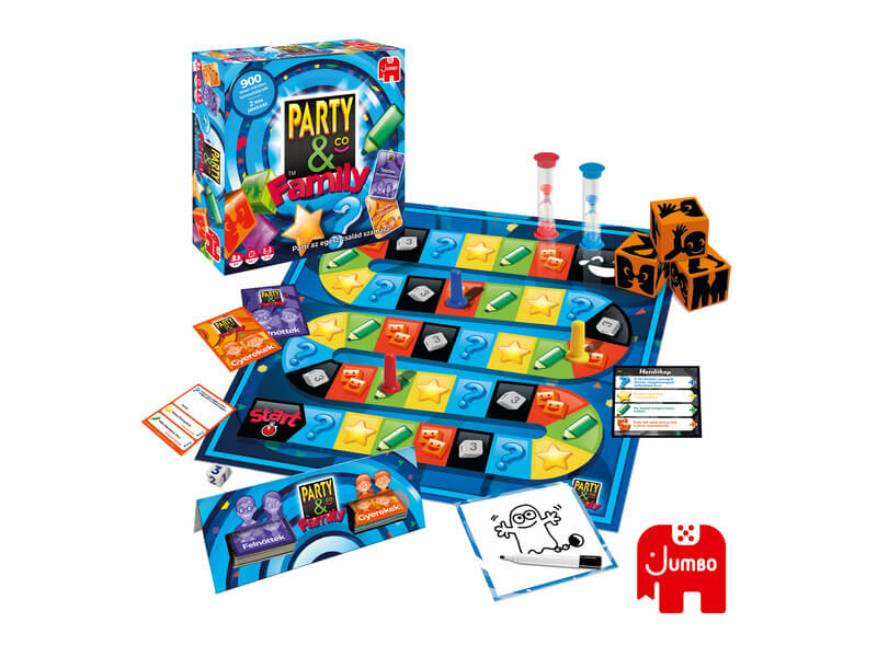 A Party&Co Family társasjáték egy szórakoztató és izgalmas társasjáték az egész család számára! A Party&Co Family egy könnyen tanulható, de nagyon szórakoztató társasjáték. A feladatok öt különböző kategóriába tartoznak: Mutogatás és hangok: A játékosnak mutogatnia vagy hangokkal kell imitálnia valamit, például egy állatot, egy tárgyat vagy egy személyt. Rajzolj: A játékosnak rajzolnia kell valamit, például egy állatot, egy tárgyat vagy egy személyt. Tiltott szavak: A játékosnak egy szót vagy kifejezést kell leírni, anélkül, hogy a tiltott szavakat használná. „Egy, kettő, három és kérdés – bármit kifoghatsz!: A játékosnak feltehet egy kérdést a többi játékosnak, és a válasz alapján kell megtippelni, hogy mi a feladat. Partikocka: A partikocka különleges akciófeladatokat tartalmaz, például meg kell táncolni, meg kell énekelni, vagy meg kell adni egy ölelést. A játékot minden korosztály számára ajánljuk, de különösen a 8 éves kor felettiek számára szórakoztató. A Party&Co Family egy kiváló választás egy baráti összejövetel vagy családi parti lebonyolítására.