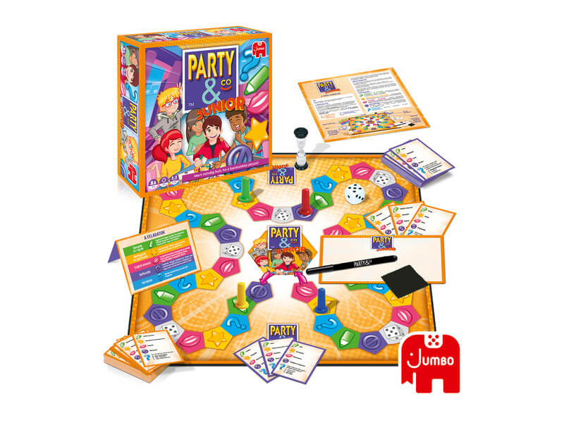 A Party&Co Junior társasjáték egy szórakoztató és izgalmas társasjáték gyermekei és barátaik számára! A Party&Co Junior egy könnyen tanulható, de nagyon szórakoztató társasjáték. A Party&Co Junior kifejezetten 8 és 12 év közötti gyermekek számára készült! A tesztek és kérdések két nehézségi szintre vannak osztva a játékosok életkorának megfelelően, amelyeket egy tanárokból és pedagógusokból álló csapat állított össze! Neked és a csapatodnak szórakoztató feladatokat kell teljesítenetek a játéktáblán haladva, és a győzelemhez elsőként kell a célba érnetek! Mutogass, rajzolj, definiálj…