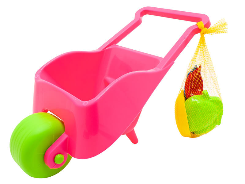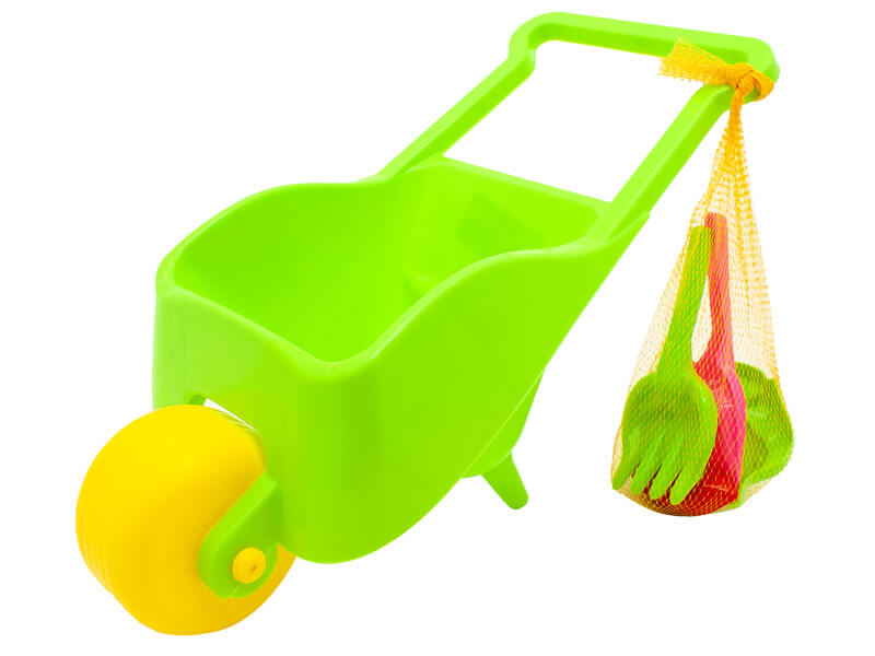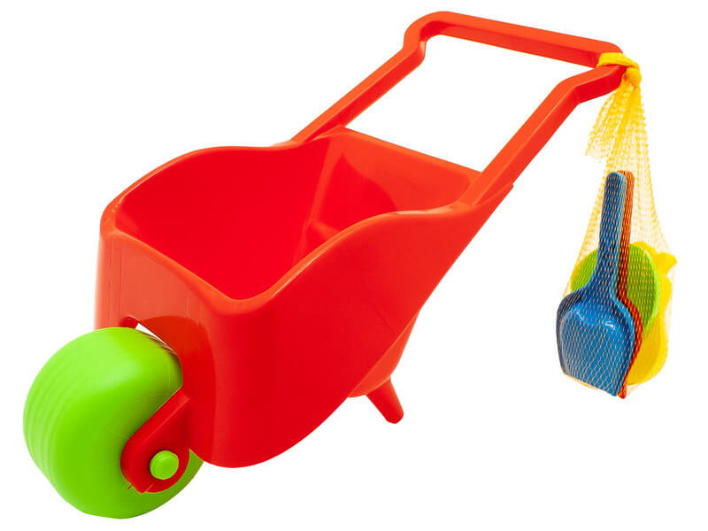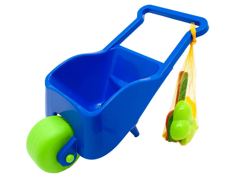 Pepi műanyag gyermek talicska homokozó készlettel, két színben Talicska mérete: 52 cm Szett tartalma: