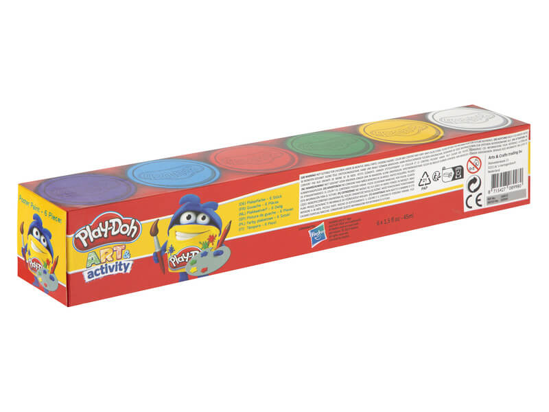 Play-Doh – Plakátfesték 6 x 45 ml 6 db 45 ml-es festékeket tartalmaz a csomag. Alapszíneket tartalmaz a csomag, amiket akár keverni is lehet, így több színt is lehet használni a festés alatt. Szépen fel lehet vinni a papírra a festéket, s száradás után tökéletes színeket nyernek.