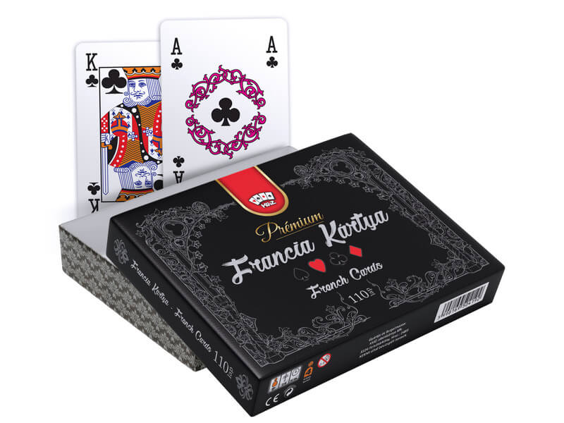 Minden háztartásban kell, hogy legyen egy francia kártya készlet. Lehetőleg jó minőségű lapok, amiknek kellemes a tapintása, jó őket kézbe venni és könnyű őket keverni, tartósak és persze előny, ha kellemes rájuk nézni is. Nos, ez a prémium minőségű francia kártya szett épp ilyen. Egy elegáns fekete kartondoboz, rajta finom fehér növényi indákat idéző minta fut végig, ami a kártyalapokon is visszaköszön. 110 db kártyalappal. Anyaga: papír. A kártyát a Kvíz Játékkártya Kft.-nek köszönhetjük, ami egy kifejezetten kártyák gyártására és értékesítésére szakosodott magyar családi vállalkozás. Egy ilyen kártyával élmény a játék. Készüljetek a családi nyaralásra, vagy a hűvös őszi és téli estékre egy jó minőségű kártya paklival, hogy minél több minőség időt tudjon együtt tölteni a család, játékosan. Nálatok mi a kedvenc? A Canasta, a Rummy, esetleg a Póker, vagy valami egészen más? Elő a paklival. Kezdődhet a játék?