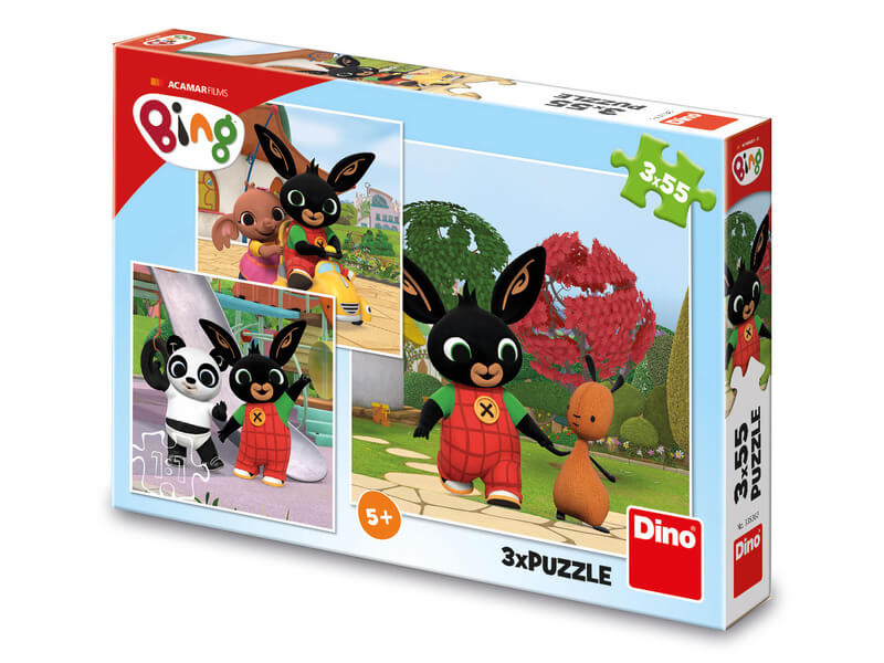 Ismerd meg Binget és barátait az izgalmas puzzle-t kirakva! Puzzle 3×55 db – Bing készlettel most beleláthatsz Bing és csapatának életébe! A játék 3 x 55 darabos puzzle-ből áll, amit igazi élvezet lesz kirakni! A színes részletek és Bing nyuszi mókás megjelenése, minden mesenézőnek ismerős lesz. Találd meg a kép sarkait, majd kezdj el befelé haladni a kép belsejébe! Ha úgy érzed mégis elakadtál, a játék dobozán található kép segít majd eligazodni a színes puzzle darabok útvesztőjében. A játék nem csak elképesztően szórakoztató, hanem fejlesztő is. Gyakorold a logikus gondolkodásodat, a problémamegoldó képességedet és koncentrációdat egy játék alatt! Tökéletes választás lesz a puzzle a Bing és barátai rajongók számára. Készítsd el a képeket és mutasd körbe a környezetednek, hogy mások is büszkék legyenek rád! A készlet tartalmazza a 3 x 55 db puzzle-t Bing és barátai témával. A játékot 3 éves kortól ajánljuk.