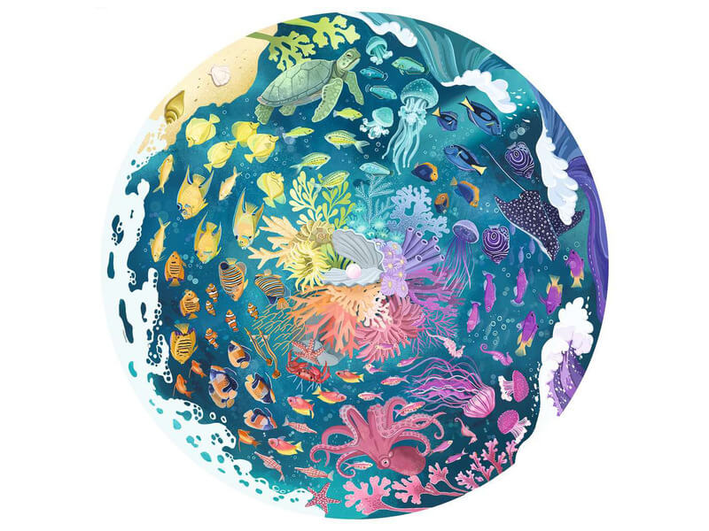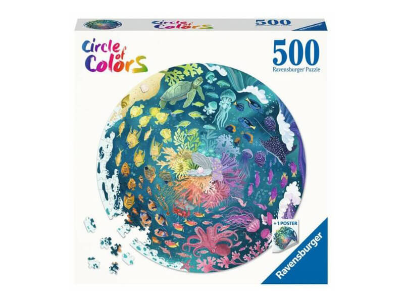 A Ravensburger 500 db-os kör puzzle – Óceán képén a világ legnagyobb vízének a színes és változatos élővilágát láthatjuk.