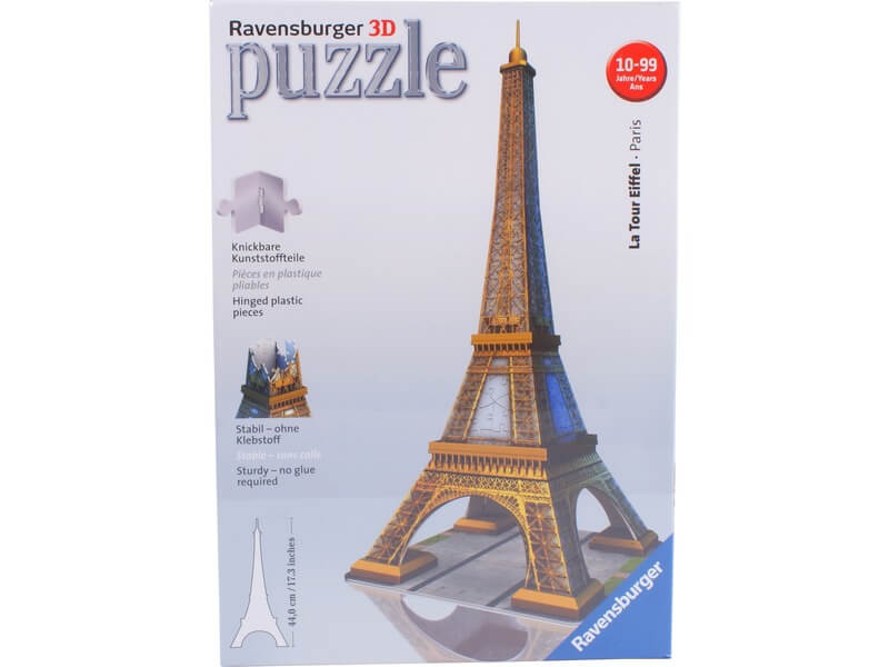Párizs leghíresebb épülete, az Eiffel-torony puzzle darabokból! Az Eiffel-torony 224 darabos 3D puzzle az 1889-ben megépült épületet ábrázolja, méretarányos kiadásban A mozaikdarabok erősen kapcsolódnak egymáshoz, ragasztó nélkül össze tudod állítani az épületet. Az Eiffel-torony 216 darabos 3D puzzle magassága: 44 cm.