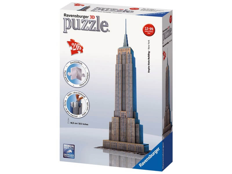 New York egyik leghíresebb toronyháza az Empire State Building. A Empire State Building 216 darabos 3D puzzle elemeiből össze tudod állítani ezt a mérnöki csodát, ami 102 emeletes. Érdekesség, hogy minden évben tartanak az épület lépcsőházában egy futóversenyt, rengeteg indulóval. A mozaikdarabok erősen kapcsolódnak egymáshoz, ragasztó nélkül össze tudod állítani az épületet. Az Empire State Building 216 darabos 3D puzzle magassága: 46 cm.