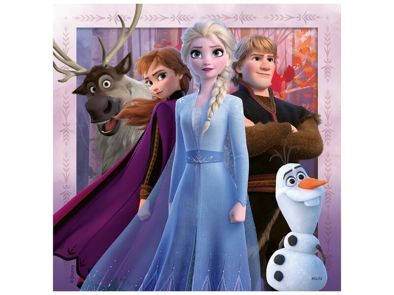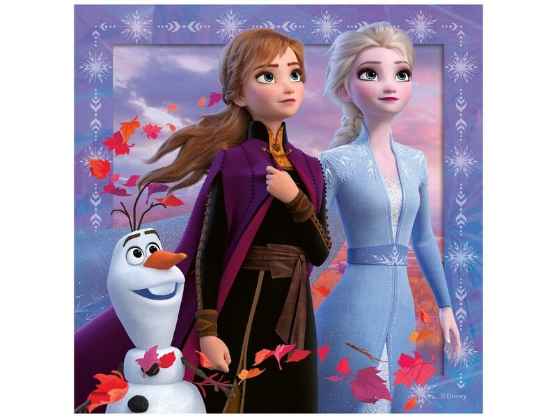 Anna és Elza hercegnők, akik utazni készülnek! A Jégvarázs 2 Az utazás 3 x 49 darabos puzzle a Frozen 2 rajzfilm alapján készült kirakós, Anna és Elsa, valamint Olaf, a hóember képével, és a többi Jégvarázs 2 szereplővel. A kirakós élénk színekkel készült, a mozaikdarabokat pontosan egymáshoz tudod illeszteni. A Jégvarázs 2 Az utazás 3 x 49 darabos puzzle kirakott méretei: 21 x 21 cm.