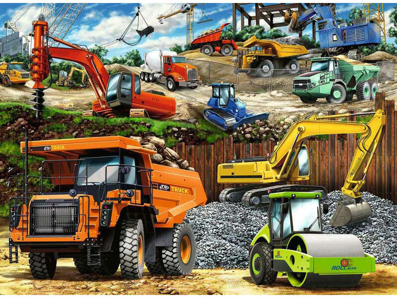 Ez egy nyüzsgő jelenet, sok nehéz építőipari jármű dolgozik! Szerinted mit építenek? Úgy tűnik, rengeteg munka vár a dömperek, kotrógépek, hengerek, lánctalpas dózerek, fúróberendezések, cementkeverők és daruk kezelőire. Melyiket szeretnéd használni? A rejtvények összeállítása értékes készségeket fejleszt, és segít fejleszteni a szem-kéz koordinációt, a finom motoros készségeket és a problémamegoldást az ismételt gyakorlással, miközben rengeteg szórakozást nyújt! A Ravensburger neve már hosszú évtizedek óta ismert az egész világon, mint a legkiválóbb minőségű puzzle játékok készítője. A kiváló termékminőség mellett a 2D-s és 3D-s puzzle kirakók rendkívül széles választékát nyújtja, mind a képi megoldások sokféleségében, mind pedig a puzzle részek darabszáma tekintetében. Kirakott kép mérete: 49 cm x 36 cm.