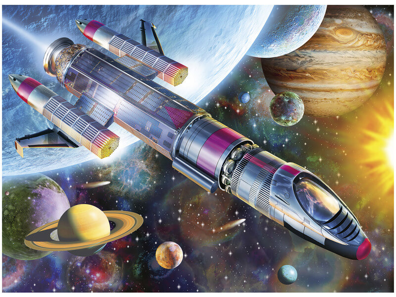 Ez a fantáziajelenet egy rendkívül elegáns űrhajót mutat be, amint elhagyja a Föld légkörét. Megpillanthatjuk Naprendszerünk néhány bolygóját, és láthatjuk, hogy a távoli nap sugarai megcsillannak a hajó sima fémfelületein. Mit gondol, mit fognak kutatni az űrhajósok? Új életet fedeznek fel?