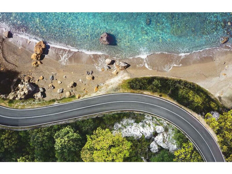 A Ravensburger 200 db-os puzzle – Tengerparti út képén egy csodaszép tengerpart mellett kanyargó út látható.