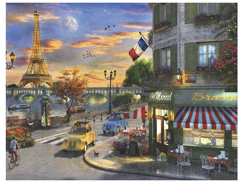 Párizs egyike azoknak a városoknak, ahol a legtöbb épített látnivaló található. Ilyen az Eiffel torony is, amelyet ezen a képen is szemügyre vehetünk, a nap lenyugvó sugarainak a fényében, amint sikerült minden darabkát a helyére illeszteni, ami nem is olyan egyszerű, hiszen 2000 kis puzzle darab adja a teljes képet.