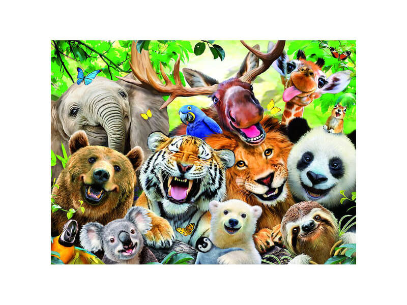 Ez az egzotikus csapat izgatott és szórakoztató! Ebben a szupermenő csoportban van egy koala, oroszlán, tigris, medve, elefánt, panda, lajhár, jegesmedve, papagáj, pingvin, zsiráf és egy nagyon édes mókus! Része Howard Robinson népszerű „szelfik” sorozatának. Ez a szuper szórakoztató és színes puzzle családbarát időtöltés 9 éves kor felett.