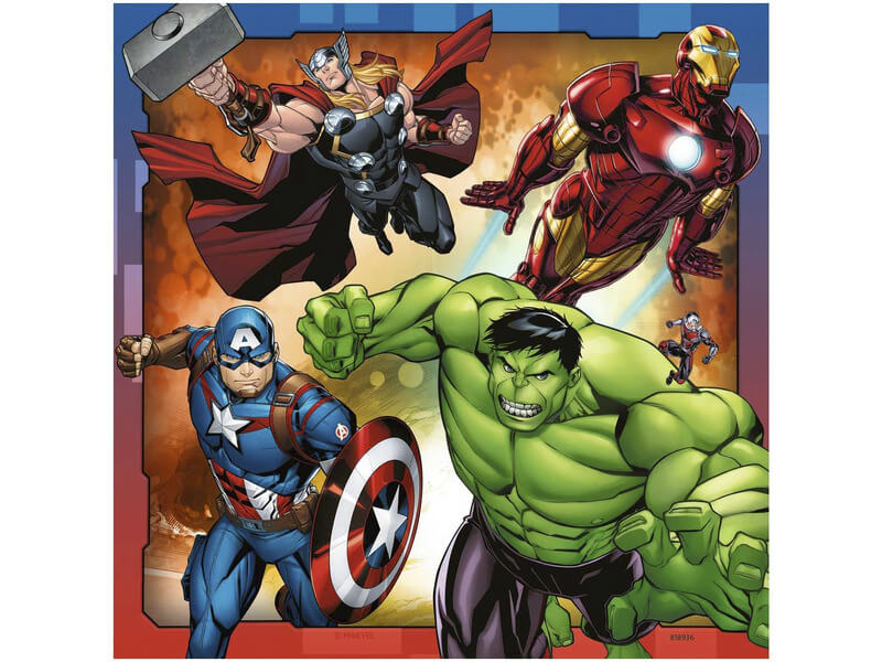3 féle izgalmas kalandban lehet részed a Ravensburger® 3×49 darabos Marvel Avengers hősök kirakóval. Rakd ki mind a 3 képet és vedd szemügyre a Bosszúállók izgalmas történeteit a képeken.