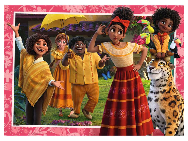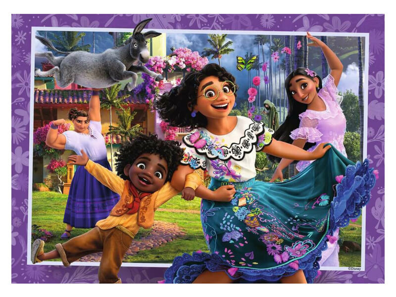 4 fantasztikus, 100 darabból álló rejtvény egy dobozban, hogy átélhesd az Encanto főszereplőinek kalandjait! A rejtvények 4 különböző képet tartalmaznak, amelyek a film különböző jeleneteit mutatják be.