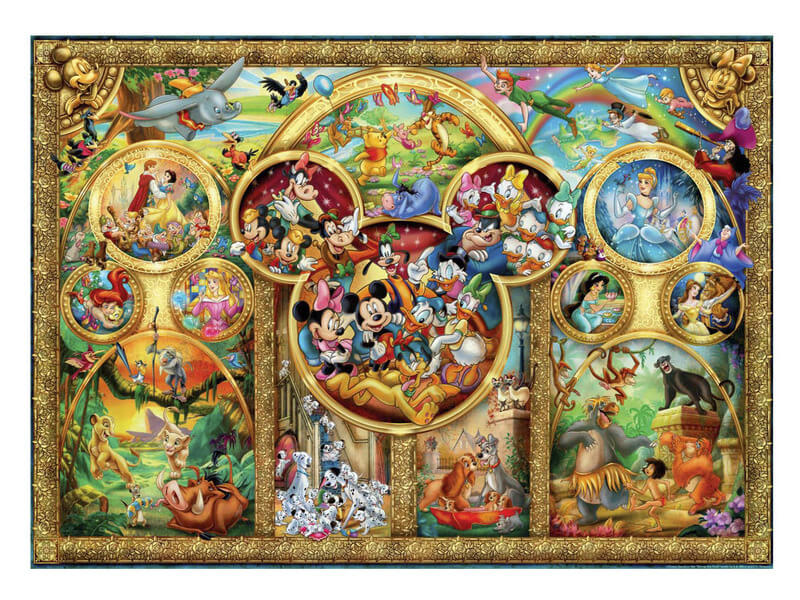 Disney szereplők gyűjteménye, egy elegáns keretbe foglalva, akárcsak egy régi festmény.