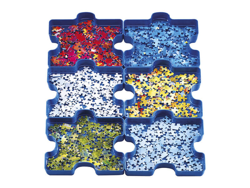 Válogasd szét a darabokat szín vagy forma szerint a 6 praktikus tálcára! Csatlakoztasd a tálcákat a szétválogatott darabok egyszerű rendszerezéséhez. A tálcákat egymásra is teheted, így a munkamenetek között sem lesz tele az asztal a puzzle darabkákkal. Az egymásra rakott tálcák biztonságosan tárolhatók a dobozban a biztonságos szállítás érdekében. A rendszerező 300-1000 darabos kirakóshoz ajánlott. A Ravensburger® már 1891 óta gyártja puzzle képkirakó termékeit. A több, mint 120 éves gyártói tapasztalat és a fokozott figyelem, amit a részletekre fordítanak, garantálja a minőséget.