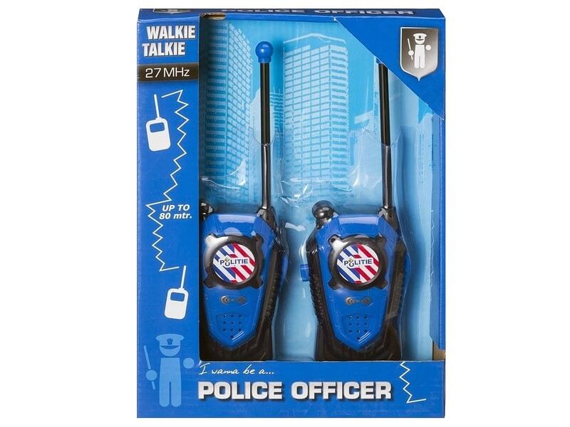 Kerítsétek be két irányból a bűnözőket! A Rendőrségi adóvevő készlet két fekete-kék walkie-talkie készülékből áll, amikkel kisebb távolságról tudtok egymással beszélgetni. Az adóvevők övcsipesszel készültek, a két szerkezet 27 MHz frekvencián kommunikál egymássall! A Rendőrségi adóvevő készlettel feldobhatjátok kommandós vagy rendőr jelmezeteket is. A készlet 2 darab 9V elemmel működik, a csomagolás az elemeket nem tartalmazza.