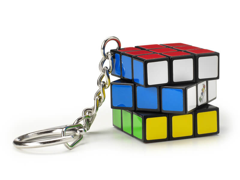 Rubik-kocka egy klasszikus színpárosító kirakós játék, amelyet kicsik és nagyok egyaránt élvezhet-nek otthon, vagy akár útközben. Ebben a szettben egy kicsi hordozható utazó kulcstartó koc-ka található, hogy soha ne legyen egy unalmas pillanat se. A Rubik-kockának hat különböző olda-la van, amelyek mindegyike kilenc színes négyzetből áll. A cél a Rubik-kocka eredeti állapotába való tekerése és forgatása, amíg minden oldalán csak egyforma színt láthatunk. Összesen 43 252 003 274 489 856 000 állása van a négyzetek elrendezésének, és ezek közül csak egy jó megoldás van, amelyet a sorok tekerésével és csavarásával lehet kirakni. A játék fejleszti a logikus gondolkodást, a 3D látásmó-dot és a problémamegoldó képességet. A Rubik-kocka – mechanizmusának köszönhetően – könnyen tekerhető, oldalai matricázottak.