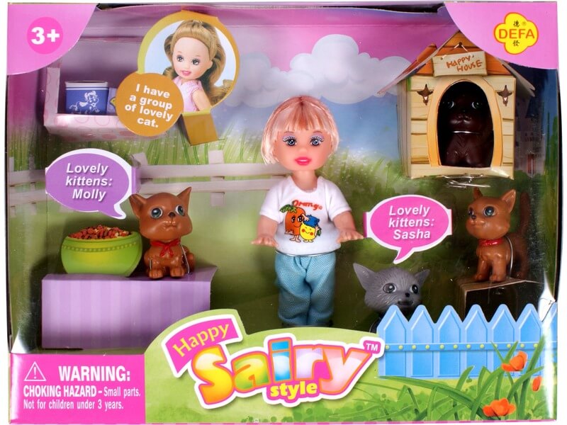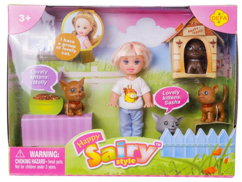 Gondoskodj Sairy kedvenceiről, a cicákról! A Sairy baba cicákkal egy kisebb méretű játékbaba, négy cicával. A baba karjai és lábai mozgathatók, Sairy imád kedvenc macskáival játszani, akik hálásak a törődésért. A Sairy baba cicákkal készlet együtt használható más játékbaba készletekkel is. Sairy magassága: 11 cm. A játékok külön kaphatóak. A megjegyzésben kérjük tüntesd fel, hogy melyik változatot szeretnéd!