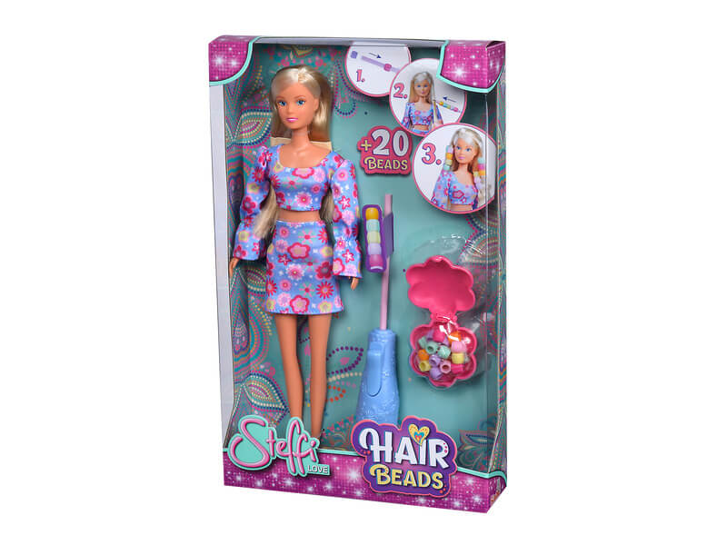 Steffi barbie baba hajgyöngy készlettel a csomagolásban érkezik a legkreatívabb gyerekekhez. A gyerekek a dobozban található gyöngyökkel és a felfűzésükhöz szükséges eszközzel igazán egyedi és kreatív frizurát varázsolhatnak babájuknak. A hajgyöngyök tárolására egy zárható doboz lesz a segítségükre, aminek a másik oldalát fésűként lehet használni. A Steffi baba hajgyöngy készlettel a baba virág mintás ruhában, egy pink, virág alakú fésűt, fűzőtűt és sok színes hajgyöngyöt tartalmaz. A babázós játék fejleszti a kicsik érzelmi intelligenciáját, hatással van társas kapcsolataikra és bővíti szókincsüket. A Steffi baba mérete 29 cm.