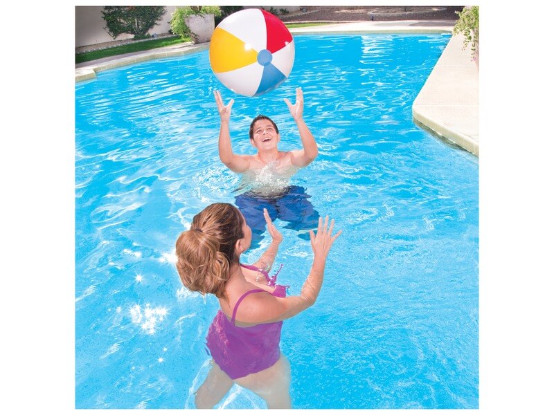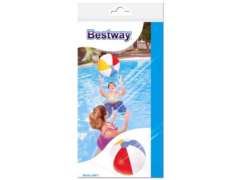 Retró felfújható strandlabda, a medencében való labdázáshoz! A Felfújható csíkos strandlabda a régi időket idézi piros-sárga kék csíkjaival. A labda dobáláshoz kiváló, a labdát biztonsági szelepen keresztül tudod könnyedén felfújni. Átmérő: 61 cm.