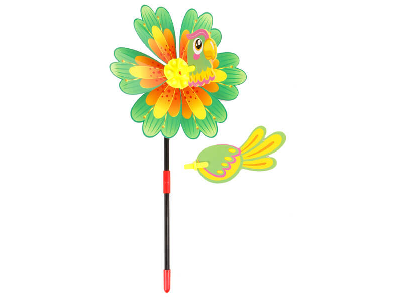A műagyangból készült pálcika jó fogást biztosít, akármilyen hosszan szorongatják a gyerekek séta, vagy épp autózás közben. A pillekönnyű szirmok gyors táncra perdülnek a szélben és velük pörögnek a kis állatok is. Az állatos-virágos szélforgók a szél felfedezése mellett még a szerepjátékra is lehetőséget adnak.