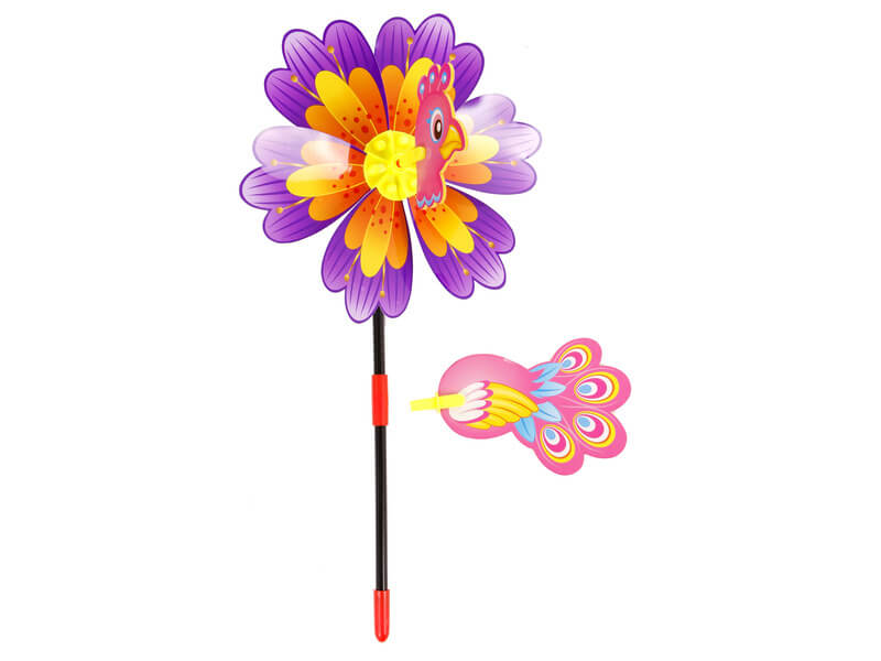 Melyik gyerek ne szeretné a szélforgókat? Főleg ha a szélforgók gyönyörű virágokat formáznak, és a szirmok közepén még egy kedves kis állatfigura is figyel. Sőt, az a kedves kis állatfigura mintha beleszorult volna a virágba! A virág egyik oldalán ott az állatka feje, a túloldalon pedig a hátsó fertálya. Aggodalomra semmi ok, egy virágba beszorulni elég jó móka.