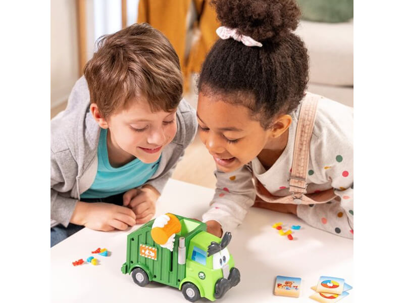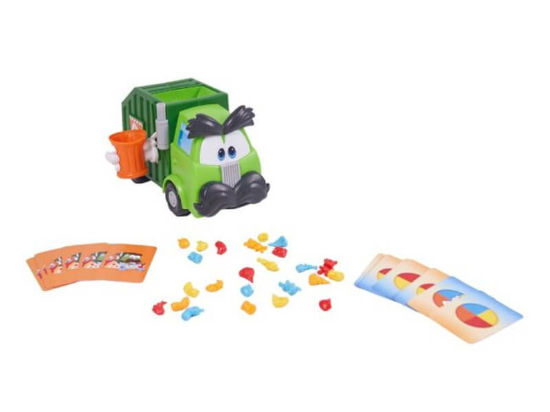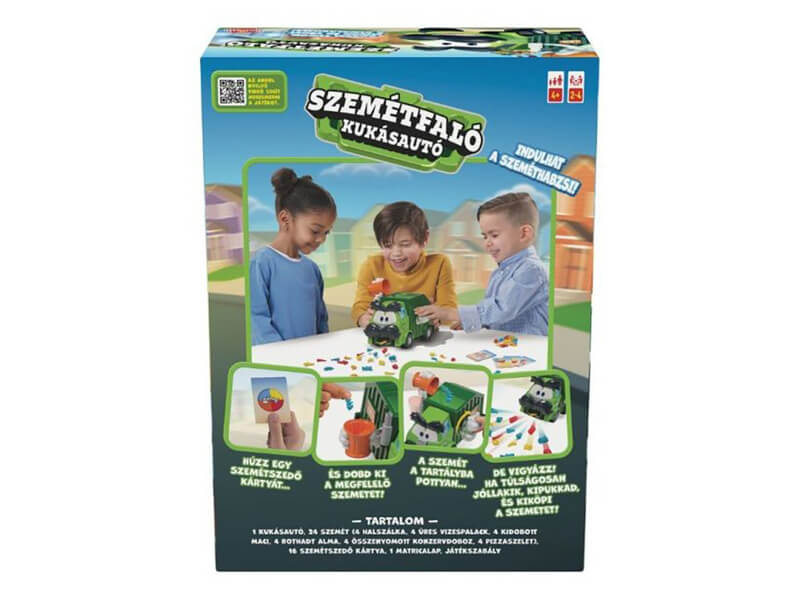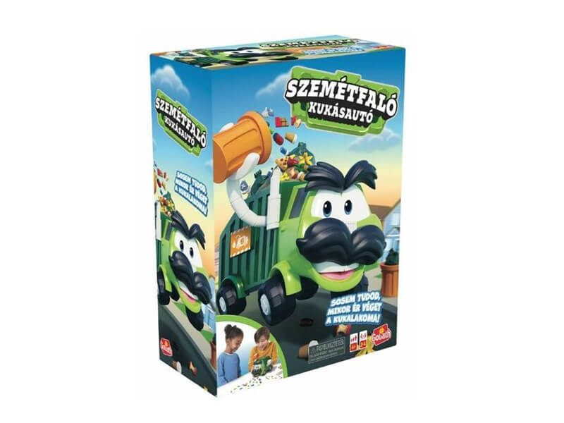 Egy vicces társasjáték, amelyben a gyermekeknek a kihúzott kártyán látható kép alapján kell betenniük az előttük álló szemétkupac megfelelő elemeit a szemetesbe. Ha elfordítják a kart, Szemétfaló Úr máris beleönti a szemetes tartalmát a saját szeméttartályába – és indulhat a szemétfalás!