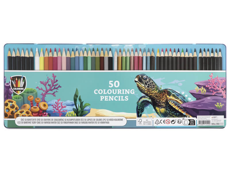 Színes ceruzák fém dobozban, 50 db