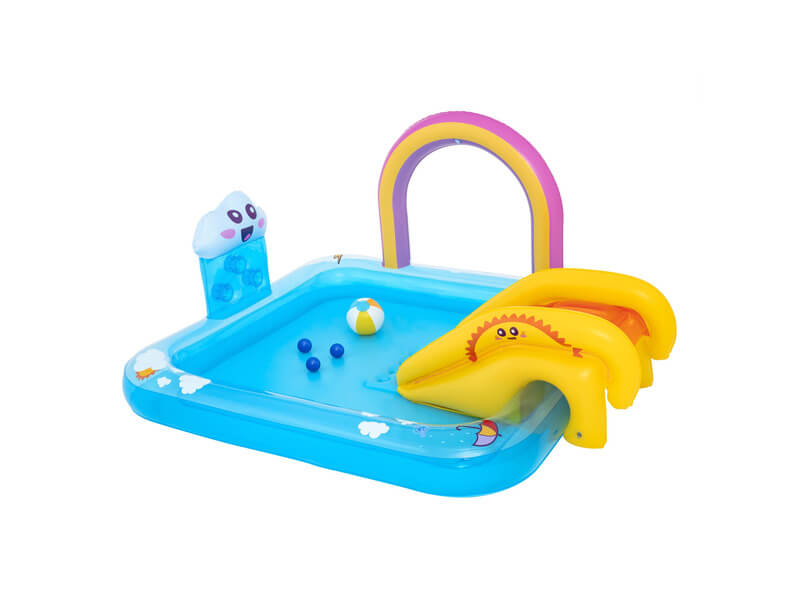 | A Szivárvány játékcenter vidám, felfújható vizes játékközpont, ami a kerti pancsolást igazi nyári bulivá teszi. Játékos kialakításával és többféle mókaelemmel leköti a gyerekeket, gyorsan felfújható és a nap végén könnyen leereszthető. Csak felnőtt felügyelete mellett használandó. |