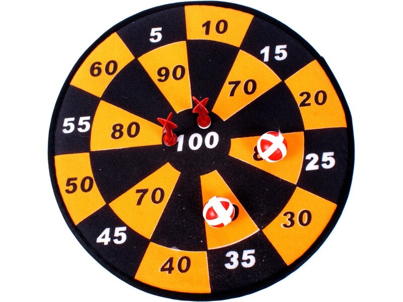 Dobjatok célba a tépőzáras darts táblán! A tábla egy kampóval vagy szöggel szinte bárhova felakasztható, és gyakorolni tudjátok vele a célbadobás tudományát! A fekete-narancssárga mezők különböző pontokat érnek, a játék lényege, hogy minél több pontot elérjetek adott távolságról. A készletben 2 db tépőzáras labda és 2 db tépőzáras nyíl található, amik megtapadnak a tábla felületén. A tábla átmérője: 36 cm.