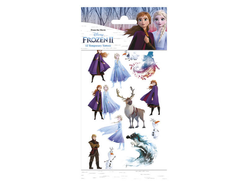 Gyermekeknek készült tetoválás utánzat, mely bőrre ragasztható. Kedvelt figurák, vagy állatok láthatóak a Jégvarázs meséből. Használati utasítás: vágja ki a kiválasztott képet. Távolítsa el az átlátszó filmréteget. Tegye a matricát a megtisztított, száraz bőrre. Nedves anyaggal áztassuk kb 30 másodpercig, míg a papírréteg könnyen el nem választható. Majd vegyük le a papírt s szárítsuk meg a tetoválást.