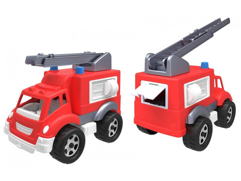 Erős felépítésű tűzoltóautó, mozgatható létrával! A Titan műanyag tűzoltóautó egy piros létrás járgány, amivel utánozhatod a tűzoltók fontos munkáját. A tűzoltóautó fémtengelyekkel van ellátva, ezért nagyon strapabíró, az autó fülkéjébe kedvenc játékfiguráid is be tudod ültetni. A Titan műanyag tűzoltóautó méretei: 31 x 24 x 20 cm.