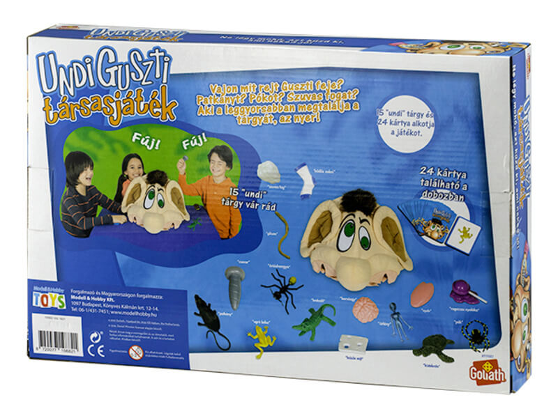 Tartalom: 1 db Guszti fej, 15 db undi tárgy, 24 db játékkártya, 1 db játékszabály.