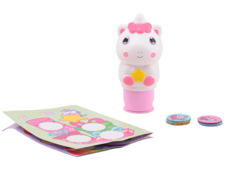 Lepje meg gyermekét ezzel a varázslatos unikornis matricanyomdával, amely 100 darab színes, cuki matricát rejt! A készlet ideális választás kreatív időtöltéshez: a gyerekek kedvükre díszíthetik vele füzeteiket, rajzaikat, meghívóikat vagy akár ajándékcsomagolást is. A matricanyomda egyszerűen használható – csak nyomja meg, és máris előtűnik egy aranyos unikornis minta! A kompakt kialakításnak köszönhetően könnyedén elfér az iskolatáskában vagy utazás során is magával vihető.