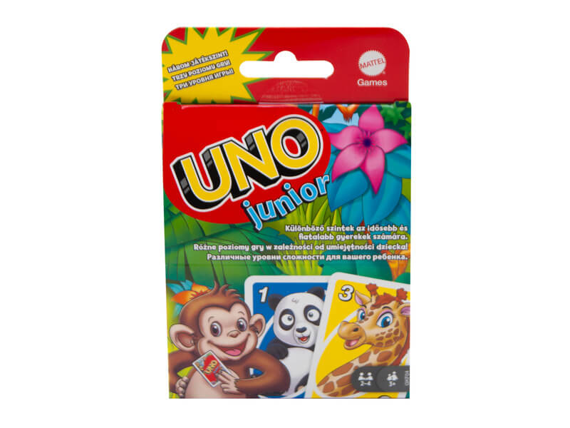 Kinek fogynak el hamarabb a lapjai? Az UNO Junior kártyajáték megegyezik a felnőtt UNO kártyával, csak épp a szabályok egyszerűbbek. Színre színt, számra számot kell tenni, és miközben fogynak a lapok, az ellenfeleket fordítással és variálással lehet kínos helyzetbe hozni. Ha már csak egy lap van a kezedben, kiáltsd, hogy UNO, és az utolsó lap lerakásával meg is nyered a játékot! Az UNO Junior kártyajáték tartalma: 56 kártyalap.