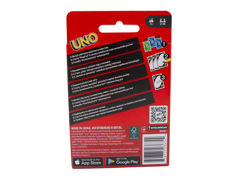 Az UNO kártyajáték a világ egyik legnépszerűbb családi játéka, ami garantáltan feldob minden estét! Egyszerű szabályainak köszönhetően gyorsan megtanulható, mégis rengeteg izgalmat tartogat. A cél, hogy minél előbb megszabadulj az összes lapodtól – de ne felejtsd el kimondani: UNO!