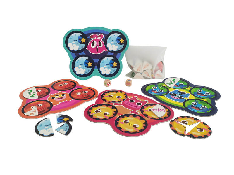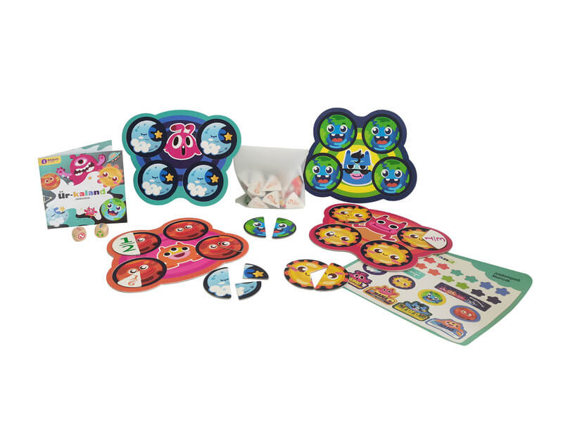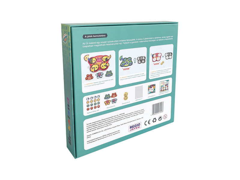 Az Űr-kaland egy szuper szórakoztató, érdekes társasjáték. A doboz 3 játékmódot is tartalmaz, amely egyéni vagy csapatban megoldható feladványokat rejt. Fejleszti a gyerekek matematikai készségét, és fejleszti a képzelőerőt. 1. játékmód: Válassz egy manótáblát és rakd ki a hozzá tartozó égitesteket! 2. játékmód: Versenyezz másokkal, és nézd meg , ki tudja kirakni a köröket a leggyorsabban! 3. játékmód: Fordítsd meg a puzzle darabokat a számozott oldalára! Dobj a kockákkal, válaszd ki a megfelelő elemet! Aki előbb rakja ki a köröket, az nyer.