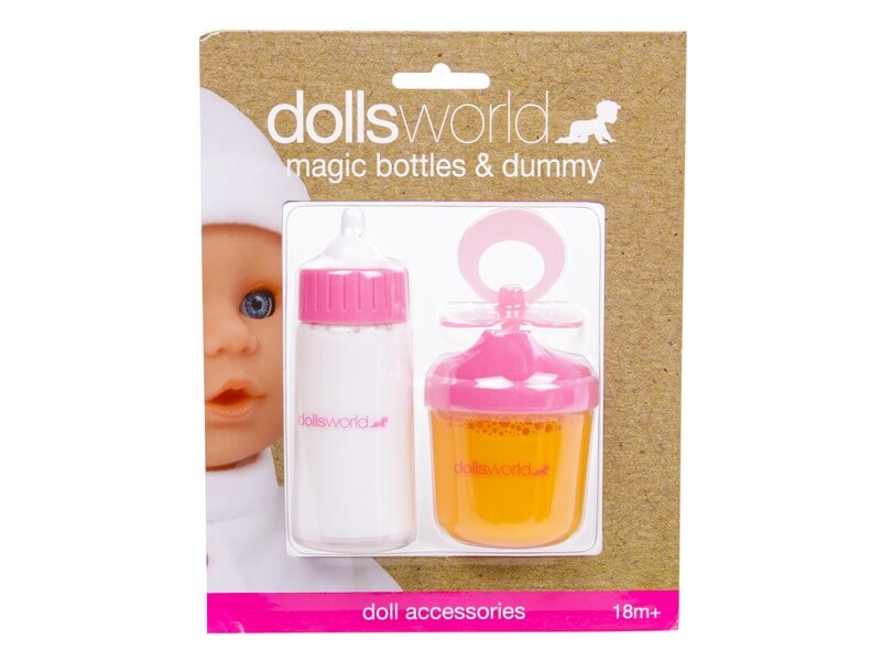 Itasd meg kedvenc játékbabádat cumisüvegekből! A Varázs cumisüveg 3 darabos készlet két cumisüveget és egy alvó cumit tartalmaz. Az egyikben tejet, a másikban pedig gyümölcslevet találsz, amikkel táplálni tudod a csecsemőt, a harmadikkal pedig el tudod altatni, a cumival nyugodtabban szenderül álomra. A cumisüvegek műanyagból készültek, és bármilyen Dolls World babával együtt tudod használni őket.