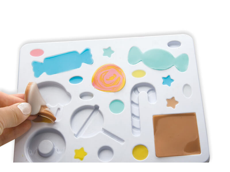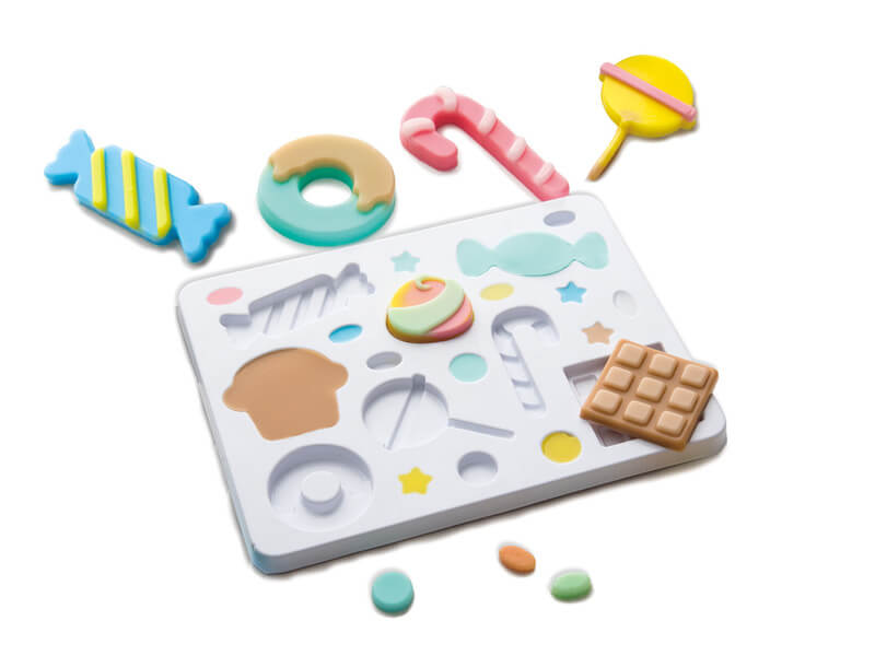 - Szórakoztató dizájnok: A készlet különféle formákat és mintákat tartalmaz, amelyekkel finom kinézetű süteményeket, cukorkákat és más édességeket lehet készíteni. A gyerekek fantáziájukat használva különböző édességeket és dekorációkat hozhatnak létre.