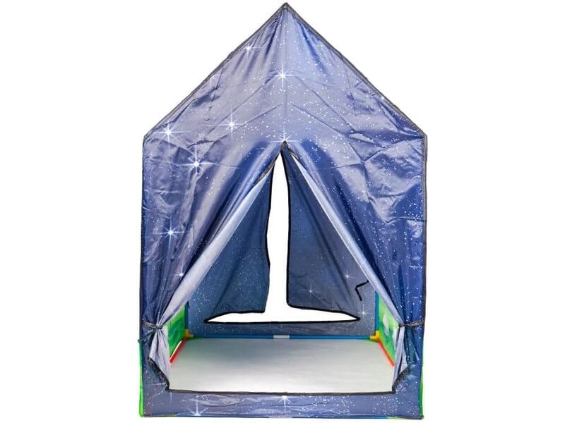 Játssz a csillagrendszerek között saját játszóházadban! A világűr játszóház végtelen izgalmakkal kecsegtet. Ha érdekesnek találod az űrben történő jelenségeket, akkor biztosan lebilincselőnek fogod találni ezt a kis galaktikus sátrat. Saját játszóházadat bármivel megtöltheted, amire egy galaxisjárónak szüksége lehet. Hozd magaddal pihe-puha takaródat, kedvenc játékaidat és kezdődhet a kilövés! Az, hogy milyen messzire szeretnél kerülni a Földtől, csak a te képzeleteden múlik. Élj át varázslatos kalandokat saját játszóházadban és hívj meg másokat is. A sátorban akár batátaid is elférnek, így valódi társakra lelhetsz az űrutazásaid során. A játék oldalán található rajzok nézegetése is jó móka, különféle történetek alkothatsz velük. Bárhogy is alakul a játék, ezzel a bunkerrel biztosan jót fogsz mulatni! A készlet tartalmaz egy összeépíthető vázat 95 x 72 x 102 cm méretben és a rá felhúzható anyagot galaxisos, asztronautás mintában.
