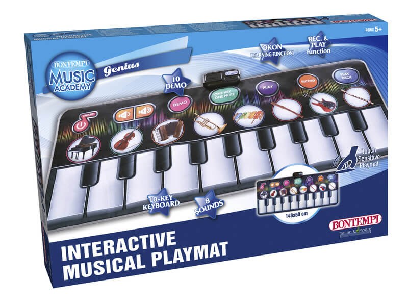 Szeretsz zenélni? Kipróbálnád milyen lehet az élet zenészként? Akkor ez a zenélő játszószőnyeg a tökéletes ajándék számodra! Ez az interaktív és egyben fejlesztő játék segít a gyerkőcöknek egy igazán különleges zenei élmény megszerzésében. A gyermekek a játszószőnyegből akár lábukkal, akár a kezük használatával tudnak dallamokat előcsalni. A Bontempi zenélő játékszőnyegével nyolc különböző hangszer hangján, tíz billentyűvel tudják megszólaltatni a dalokat. A hangszerek a következők: zongora, hegedű, tangoharmonika, szaxofon, xilofon, furulya, gitár és a fuvola. Játszhattok saját dallamokat is, vagy a tíz előre felvett dallam közül tudtok választani. A játszószőnyegen tudjátok szabályozni zene hangerejét és akár rögzíthetitek is az eljátszott dallamokat. Valamint ez a zenélő játszószőnyeg rendelkezik tanuló móddal is megkönnyítse az apró zenészek első lépéseit. A játszószőnyeg mérete: 148 x 60 cm Tápellátás: 3 db R6/AA 1,5 V elem (ez elemet a doboz nem tartalmazza).